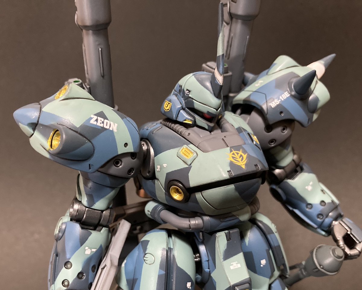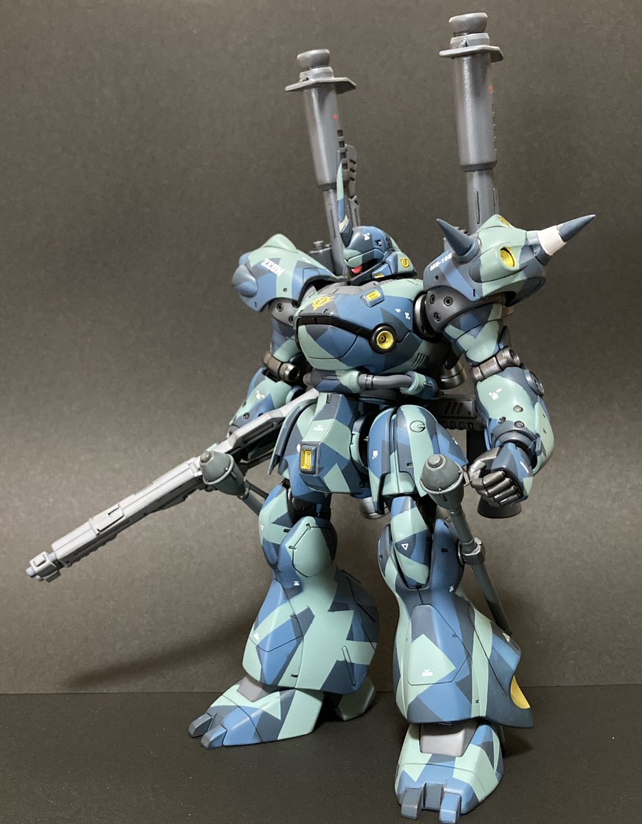 #ガンプラ スプリッター迷彩ケンプファー 初のオリジナル塗装です 反省点もあるけど、全体的にとても満足な出来!! とてもかっこいい... そしてクリアパーツモノアイ素晴らしい