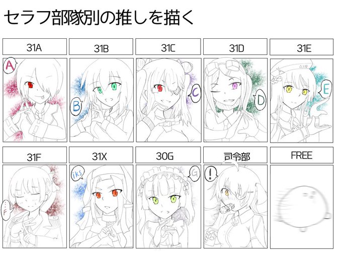 #セラフ部隊別推し描いたよ見て モクモ(@mQp23JQvMgMMBm9)様よりタグ拝借いたしました。 私がただみなさんの推しが見たいだけのテンプレ素材ですが、使っていただければ幸いです。