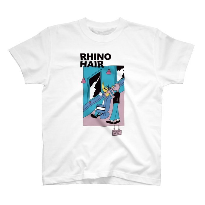 イラストをTシャツにしました。 タイトルは、『ライノヘアー』です。 この髪型にしたらまずは、家の中で過ごします😅 #Suzuri #Tシャツ #イラスト #イラストレーター 下のリンクよりご覧いただけます! suzuri.jp/nomoken/100342…