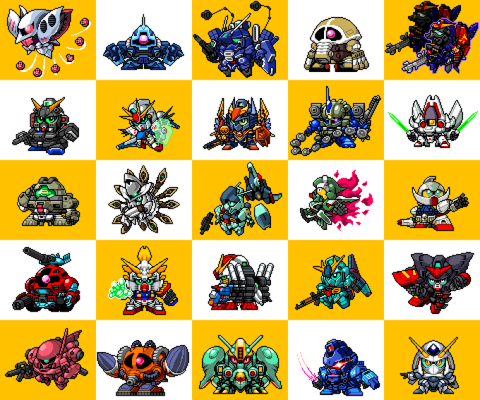 というわけでお正月に募集したリクエスト25件 無事に完了しました! リクエストさんきゅー! #ドット絵 #pixelart #SDガンダム twitter.com/twotenky/statu…