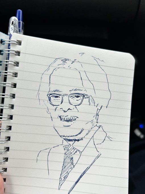 64 969 旦那さんが突如、神妙な表情で「このメモ帳開いてみて…」と言うので、何事かと思って見たら自身で描いたという原宿さんでした。円満です 23/08/17 18:45