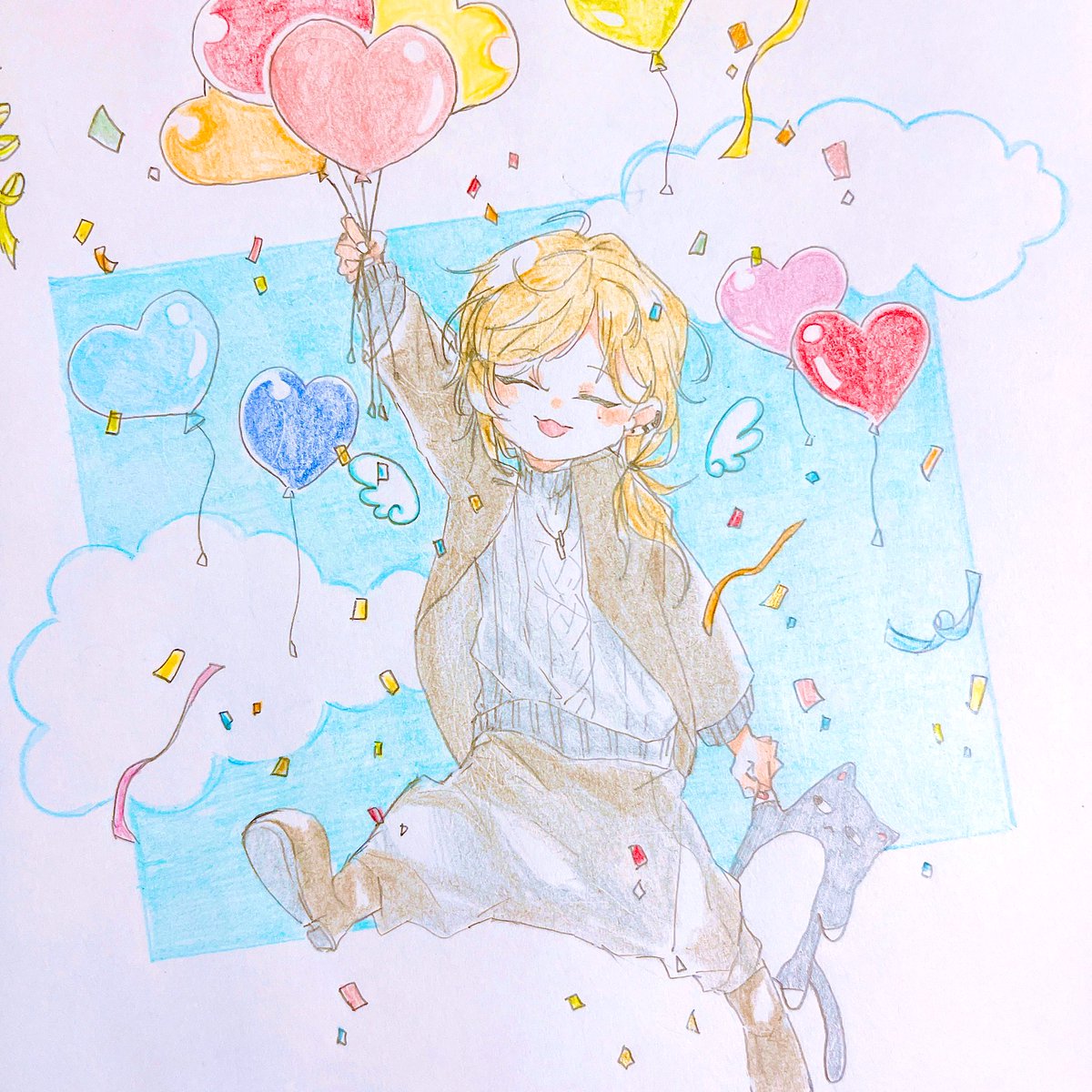 2ndシングルおめでとう〜👏🎉 楽しみ…っ!🎩🕊🎈🧡 #描いた晴