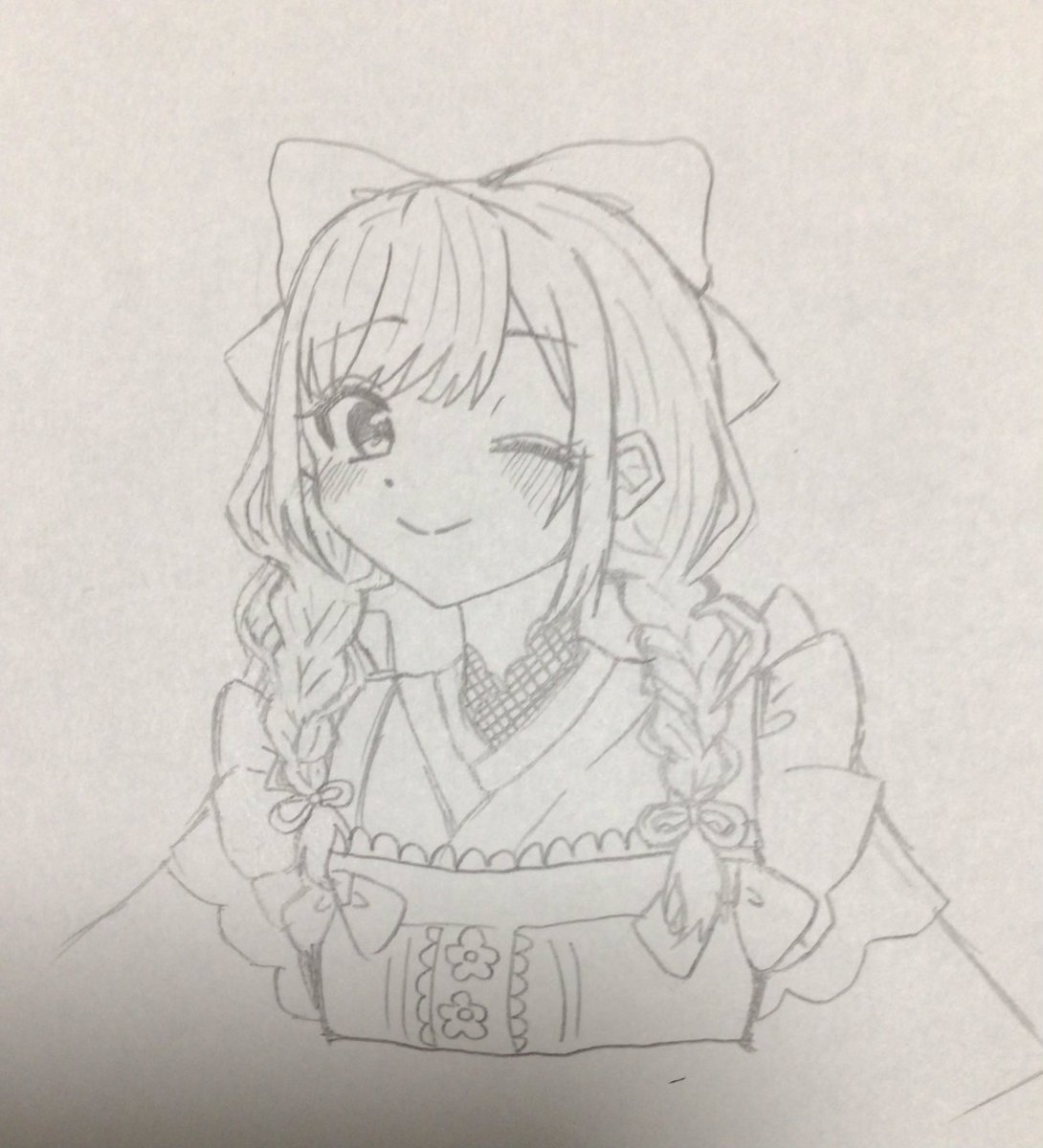 部活で描いたあまみゃ! 顔可愛くて好きだけどロリ感強めか 🤔🤔🎐 #絵こころ