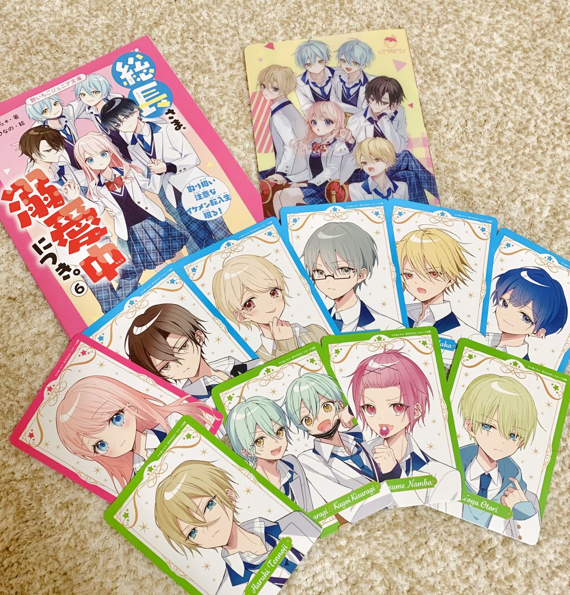 ダイジェストブックや、キャラカード等頂きました...!🍀 キャラカード塗りました🖌 ダイジェストブックは今まで描かせていただいた挿絵が漫画のようになっています!すごい😳 キャラカードは今回の6巻の初版限定でランダムで1枚ついてくるものですので欲しい!という方はお気をつけください🥳