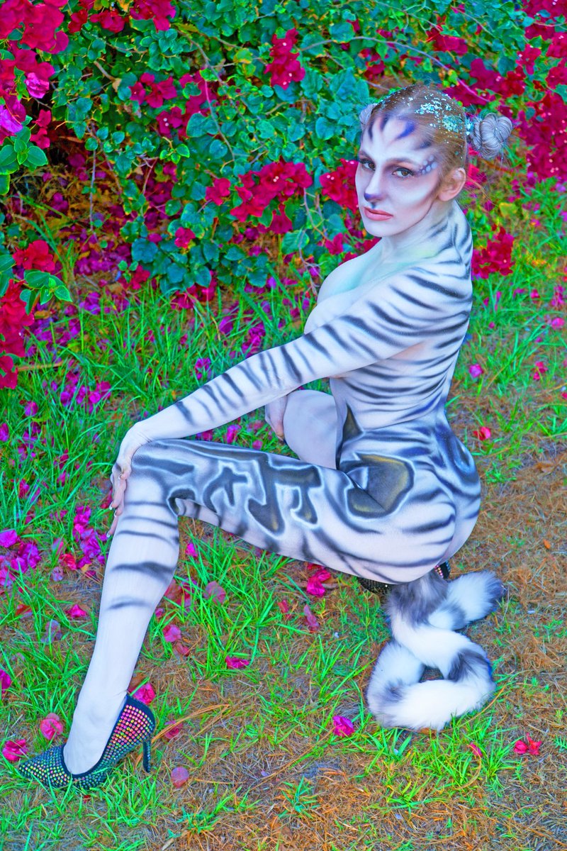 "I'm not going to lie I probably ate your husband if you threw him to me" #petplay #whitetiger #cosplay #maneater #bodypaint #flexfriday #explorepage #tyleetexas #heelfetish #tigerking