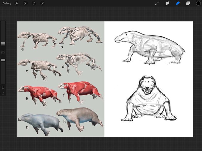 Me: Alright, it’s been a while since I’ve drawn anything. Let’s just ease back into it and avoid any super challenging subject matter. Inner me: DESMOSTYLIANS ON LAND. #paleoart #digitalsketchbook #desmostylia