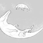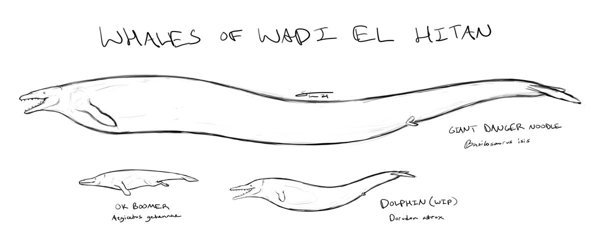#MammalMonday doodling some archaeocetes. I drew Basilosaurus and Dorudon with their legs fully-exposed the body, since they were still mobile at the knee and hip, but that’s mostly speculative on my part. #paleoart #whaleevolution