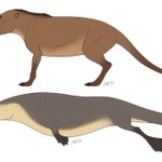 Pakicetus is a great example of how science changes with new information – and of how well-researched #paleoart can predict future discoveries. For comparison, here’s my reconstruction of an up-to-date Pakicetus (top) and its later relative, Rhodocetus (bottom). #sciart #whale twitter.com/ausar_the/st…