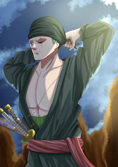 ゾロ〜!誕生日めっちゃ遅れた😭 あと絵柄変えました✨ #ワンピース #ONEPIECE #イラスト #ゾロ誕生祭2022