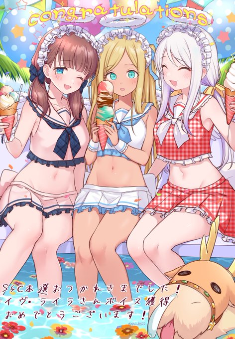 遅くなりましたが長い長い総選挙おつかれさまでしたー!個人的には推しキャラ二人に一気にボイスが付くという奇跡のような結果になりました!ボイス獲得を記念してお祝いだー🎀🍨🤟 #StageforCinderella