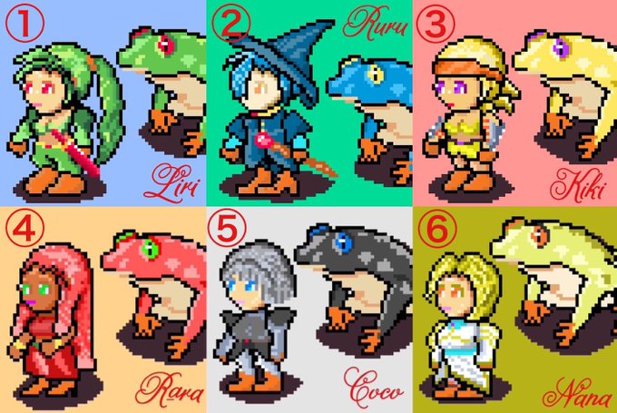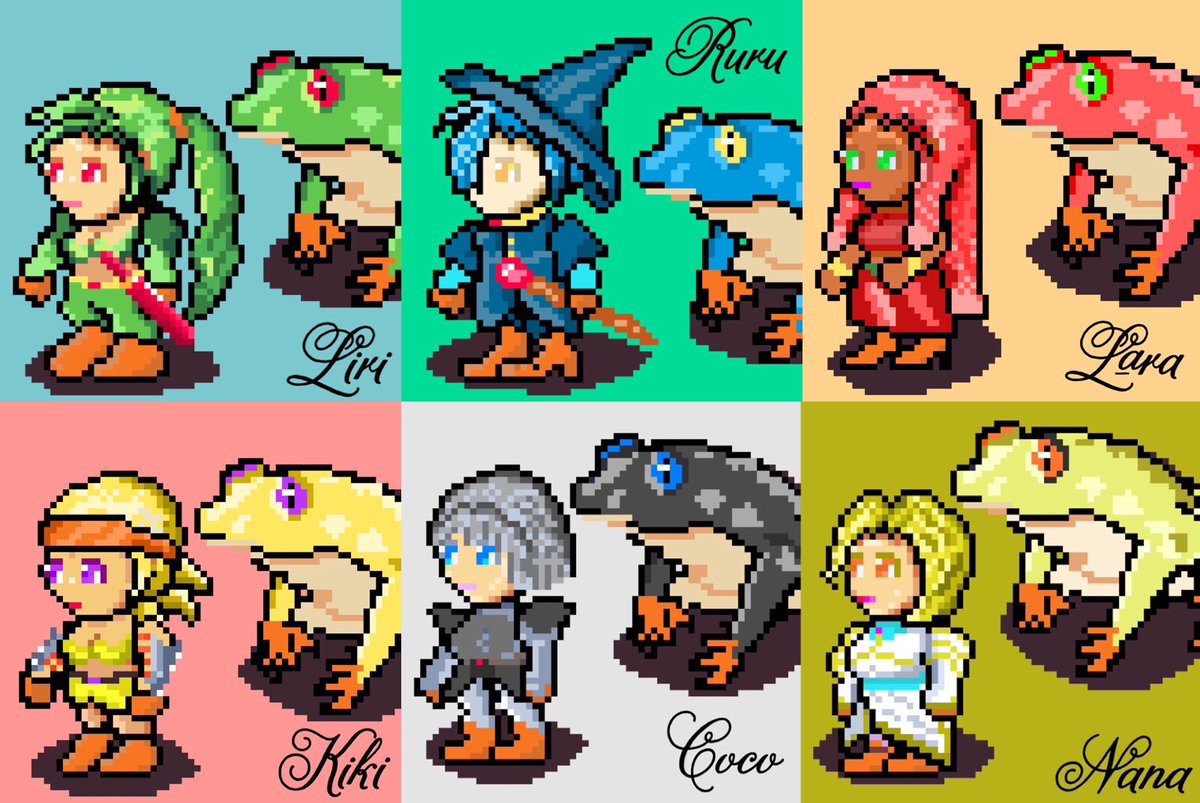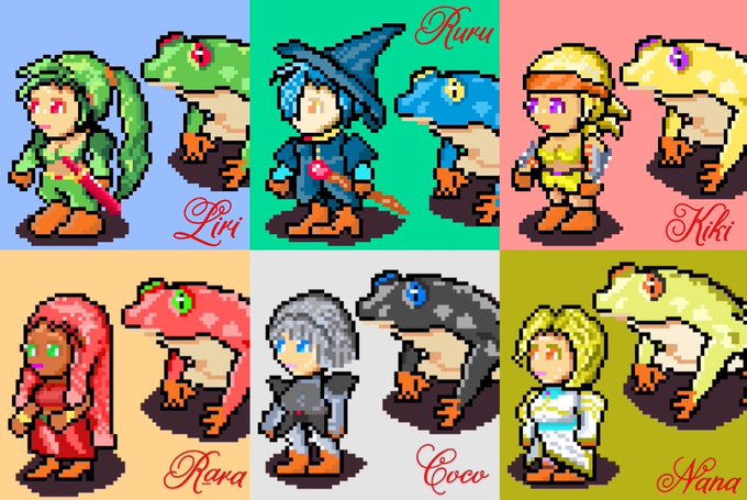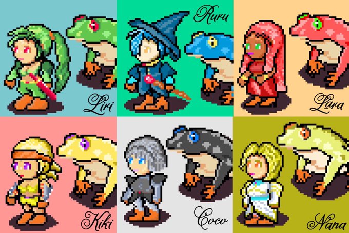 6人のカエルちゃんをまとめました🐸 題して[RainCall:March] 名前も決めたら余計に可愛くなった(๑˃̵ᴗ˂̵) giveaway企画も計画中です〜。 #pixelart #カエルちゃん #ドット絵 #gif #giveaway計画中 #誰かに刺されば・・・