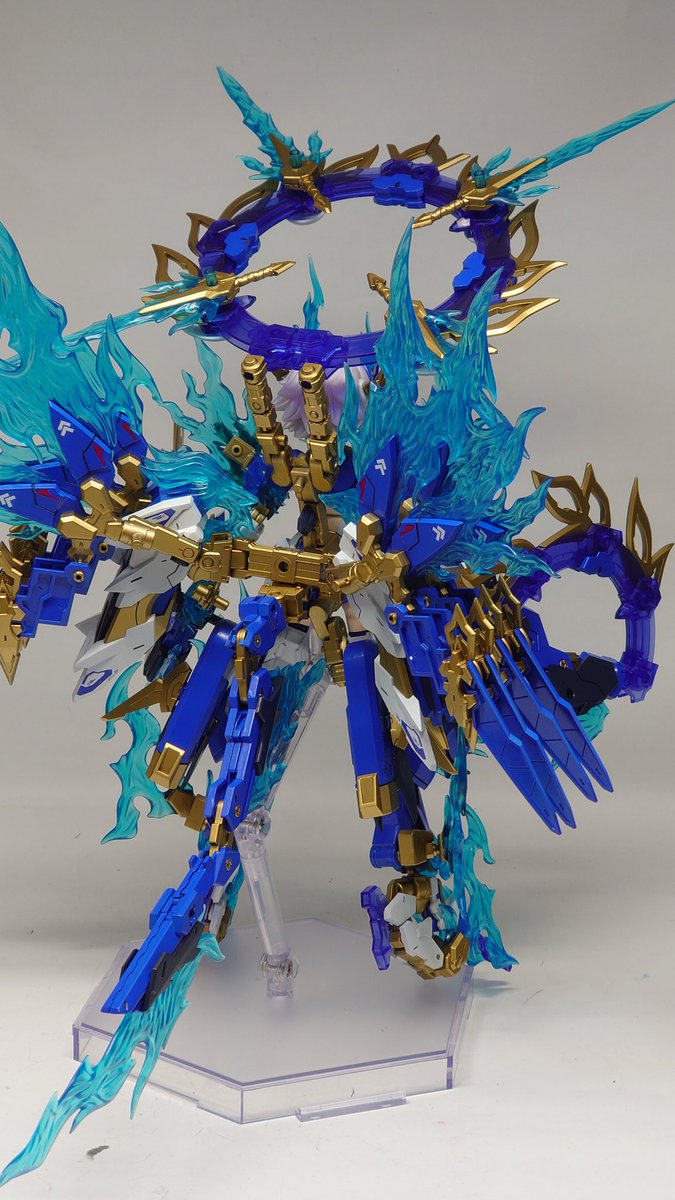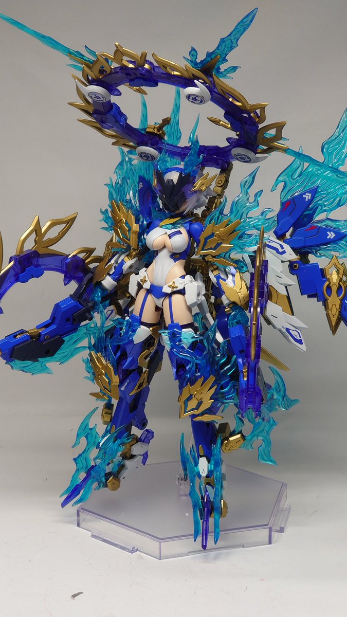 完成しましたー #メガミデバイス 皇巫 スサノヲ 蒼天 スサノヲ蒼炎のパーツ二体分を贅沢に使用してみました。 (≧▽≦)