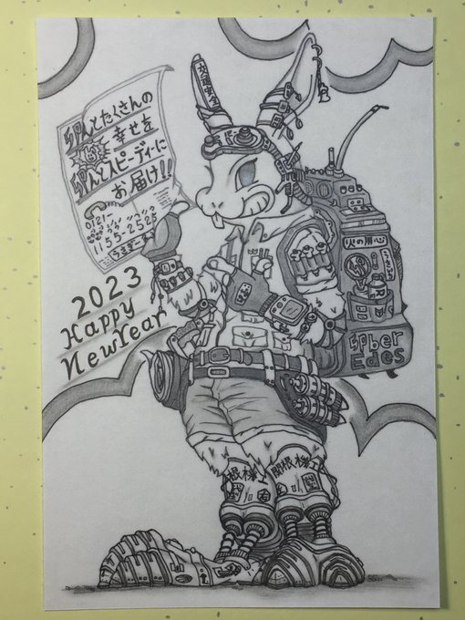 久しぶりに描いたのに「New」を「n」にしてしまうという体たらく…😑 #年賀状イラスト #卯年イラスト #年賀状イラスト2023