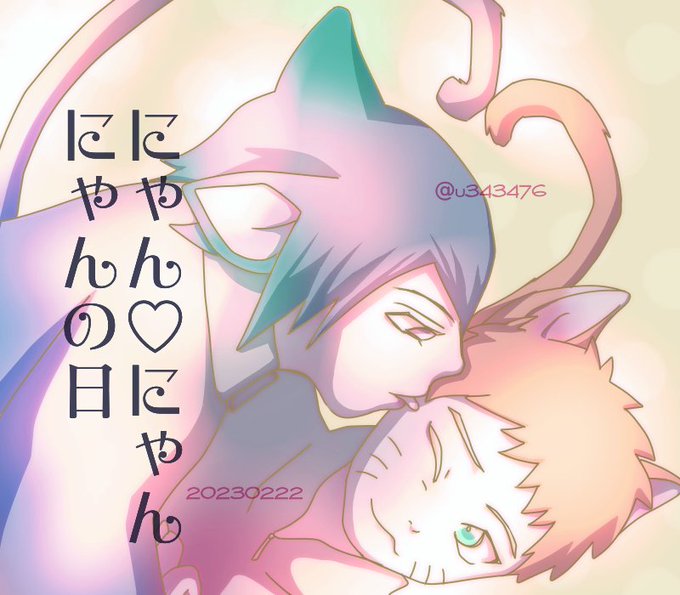 15 69 サスナル🍅🍥 にゃんにゃんにゃんの日(大人バージョンw)🐈の写真見て描きました! 23/02/22 06:04