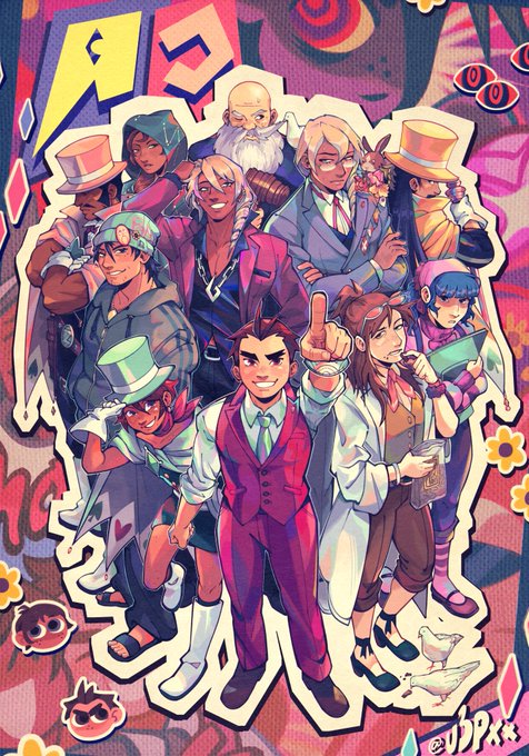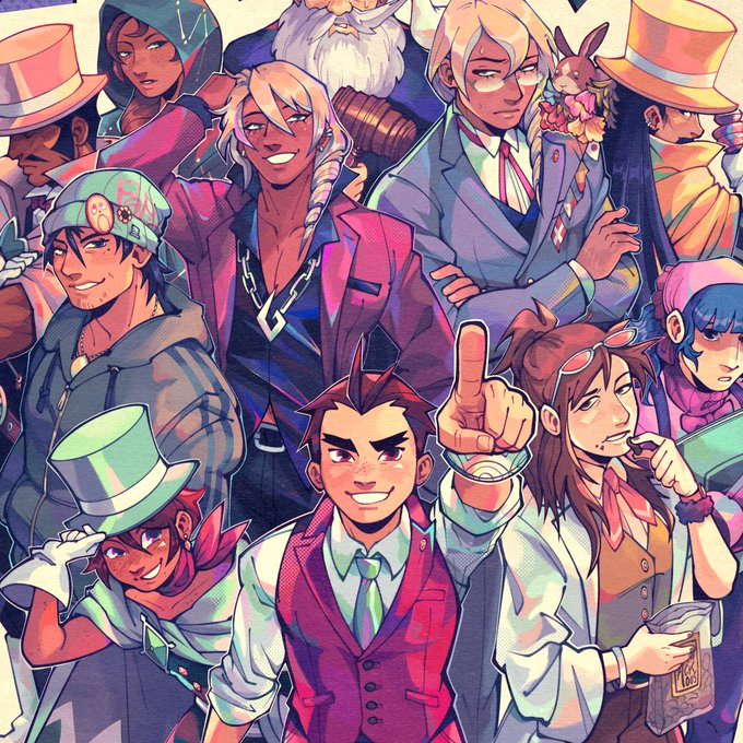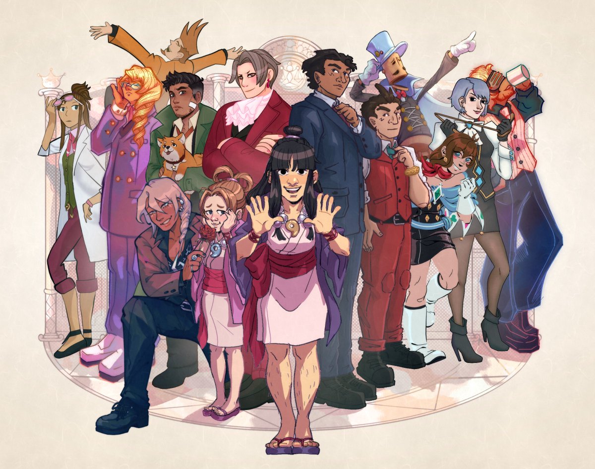 [#aceattorney] redraw of a piece of ace attorney official art by some wonderful artists from the klapollomb server! 🌻❤️💜