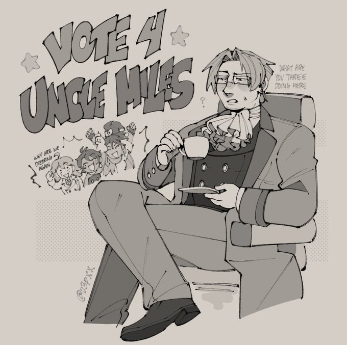 [#aceattorney] drew this as propaganda for the aa auntcle polls over on the tumbly! edgeworth's losing against phoenix so :^( i mean come ON! he's literally uncle miles!!