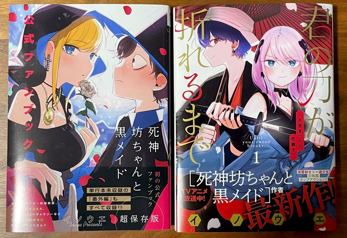 明後日8月9日発売の献本2冊頂きました🙏 「君の刀が折れるまで1巻」 amzn.asia/d/3ehAJbd 「死神坊ちゃんと黒メイド 公式ファンブック」 amzn.asia/d/fhoeUhf どちらもよろしくお願いします🌸