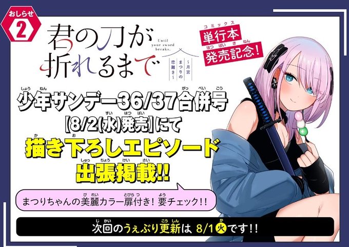 君の刀が折れるまで、1巻明日発売です 復讐ラブコメ?です🥰 巻末漫画とカバー裏とか描き下ろしました✍️ 明日お昼に一話と二話試し読みツイートするので、また読んでくれると嬉しいです amzn.asia/d/3ehAJbd