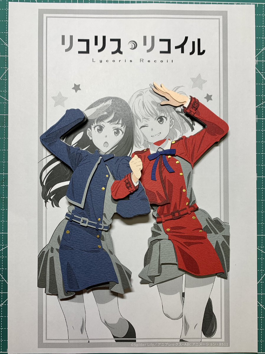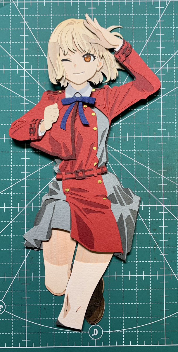 ほぼ一月ぶりですが、たきなの方も制服が進捗にのせれるぐらいには出来ました。 選んだ紙の色もいい感じになってくれたので一安心してます。 来月は他のキャラクターの誕生日切り絵作らなきゃいけないので、スピードアップしていきたいと思います。 #切り絵 #リコリス・リコイル #井ノ上たきな