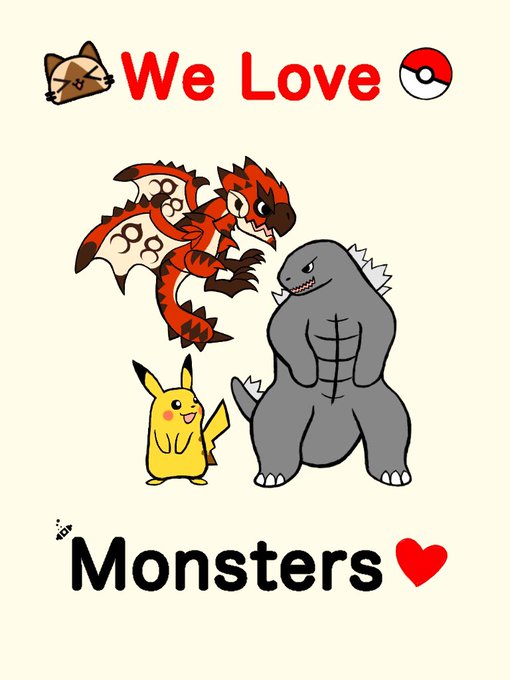 1 3 本日投稿、初のキャラクターイラストです!大好きなモンスターを詰め込んでみました。 #イラスト #ポケモン #モンハン #ゴジラ 22/11/16 21:50