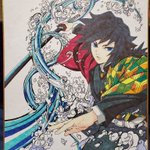 水の色塗り大変💦 #気滅の刃 #冨岡義勇 #お絵描き好きさんと繋がりたい #模写