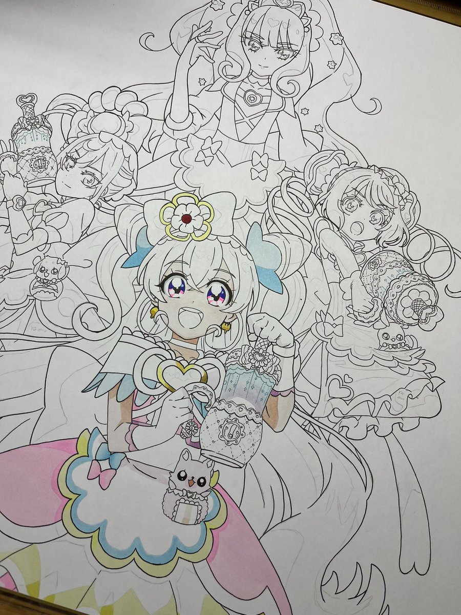 キュアプレシャス完了しましたー!! 昔と違ってカラフルで凄いですね笑笑 #デリシャスパーティプリキュア #キュアプレシャス #模写 #お絵描きさんと繋がりたい