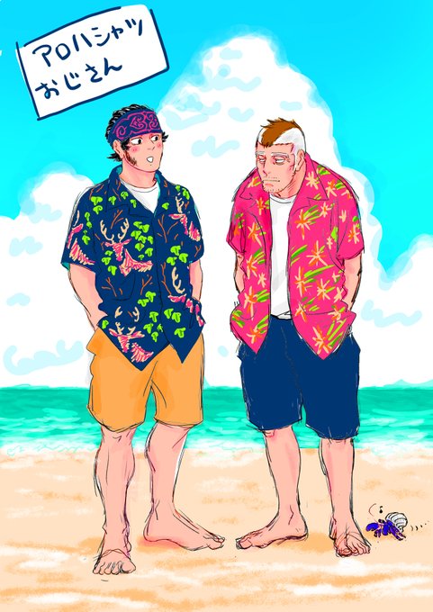 34 142 夏なのでアロハシャツおじさん。 色塗り難しいよう。 23/08/20 22:49