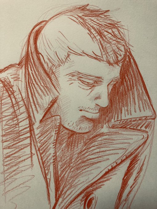 9 42 昼間にあげた落書きのジジィの顔がわびしすぎてかわいそうだと私の中のキラウシに言われた気がしたので描き直したミスター凶運。 22/03/14 21:42
