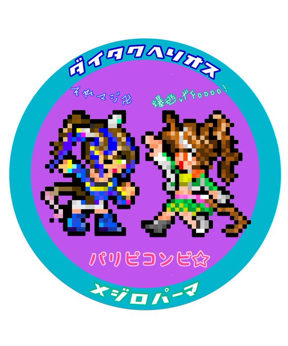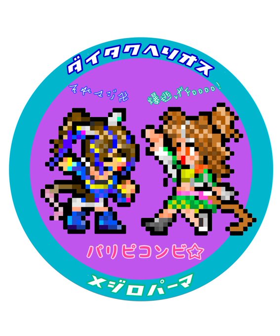 1 6 マヤちゃん作ってたつもりが、気付いたら愛すべきコンビに変わってた☆ それな☆ #ドット絵 #ウマ娘 #ロマサガ #ダイタクヘリオス #メジロパーマ #パリピコンビ 21/04/13 01:10