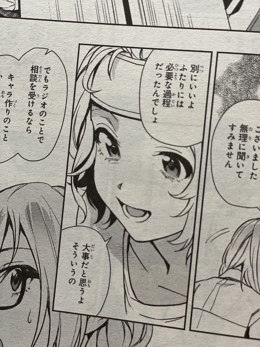 本日発売の電撃マオウ8月号にコミカライズ版 #声優ラジオのウラオモテ 第15話が掲載されています!色んな人に支えながら進んでいく2人…コミカライズ版は次回最終回です!ぜひ見届けてください💐