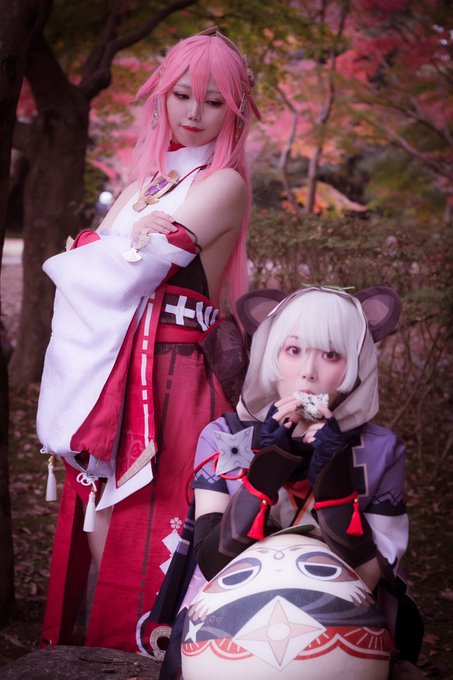 1 7 *cosplay 原神 香菱/八重神子 1枚目:@AsukaShimotsuki 2枚目:@kamo_deer_pic ※2枚目再掲 可愛い系と綺麗系で違いが出てたら嬉しい☺ #海灯祭0129 #麗yers #cosplay 23/02/11 22:14