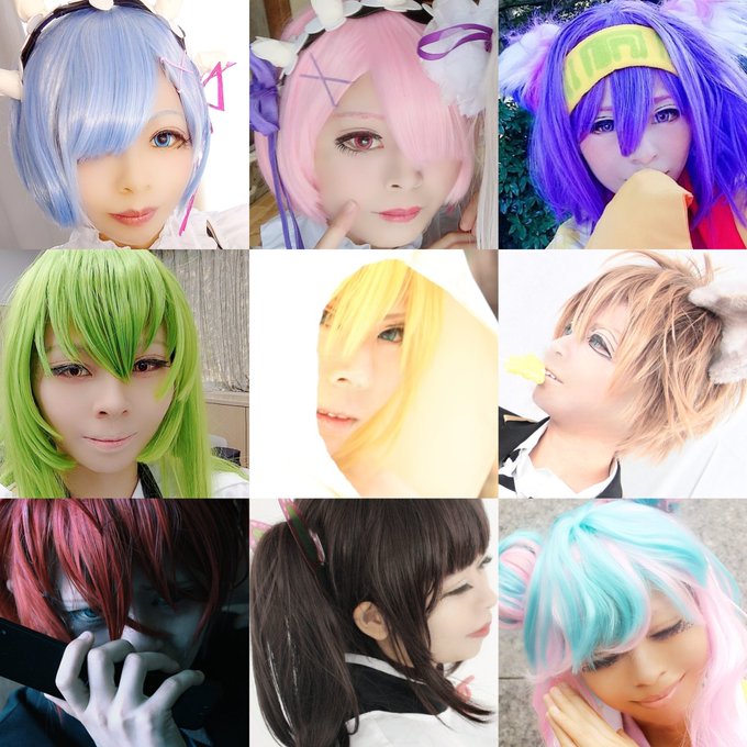 #みんなのコスでカラフルな髪色キャラを9人見たい あ、やべ銀髪入れ忘れた まぁ、いいかw← 赤とピンクと紫と金と銀は 微妙に色が違うが沢山ある 何色か分からない子もいる( '-' ) もっとカラー増やしていきたいね👍✨