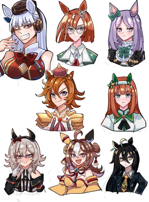 23 61 ウマ娘、遂にアプリインストールしちゃったので記念として第一印象、知ってる分の情報から「好きだな…」ってなってる子達を描いてみました。 好みのタイプがわかりやすいとか言うな 22/09/15 19:36