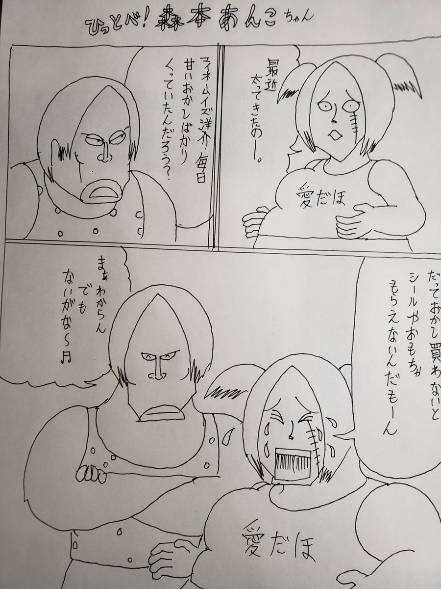 4 19 昔描いた漫画だっぺぇ。いつかあんこちゃんの胸像をたてるのがおいらの夢だっぺぇ!もちろん純金だっぺぇ! 22/07/29 16:14