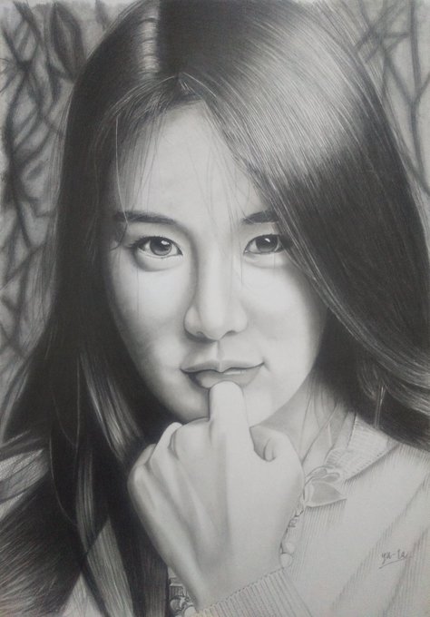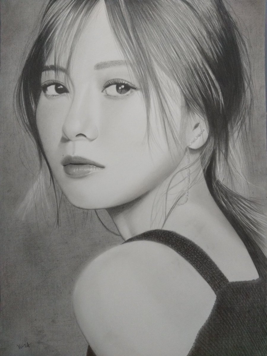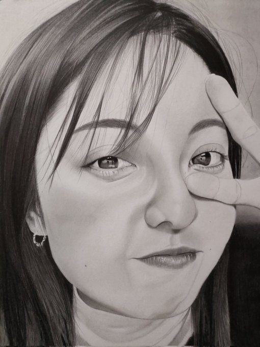 描き終わりました( ˘ω˘) 洋服のボヤケた感じが出せなかった…… 勉強します _φ(・_・ #鉛筆画 #似顔絵 #Pencildrawing #絵描きさんと繋がりたい #お絵描き好きさんと繋がりたい #田村保乃