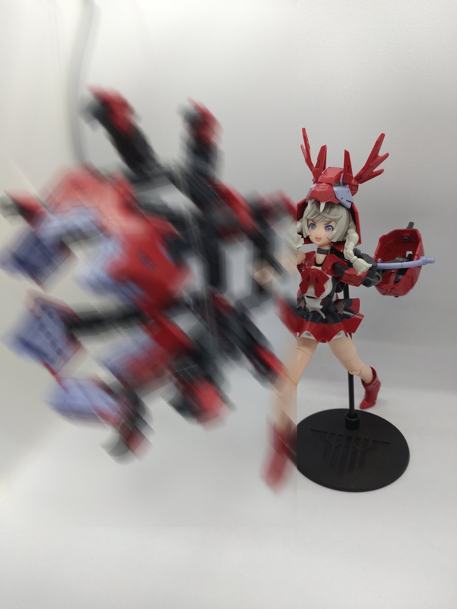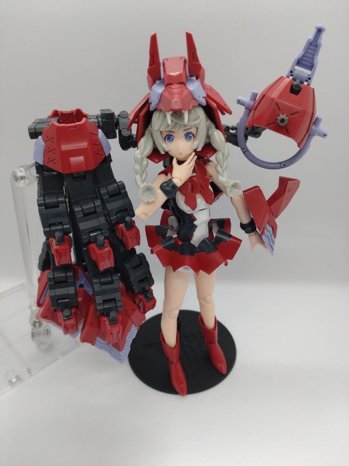 1 9 これは赤ずきん2箱で作った対女神組織規格外六連超振動突撃爪。といってもほとんどジョイントパーツなのでもしかしたら1箱で充分か。 ついでにフレキシブルアームAで籠をEOキャノン風に。 #メガミデバイス #赤ずきん #グラインドブレード 22/08/17 15:26