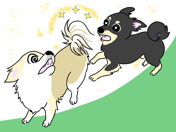 wanwan様のデカチワワズが好きすぎて、オマージュ?ファンアート?です😆 あえて仲悪そうな写真、最高です😂 #チワワ #しっぽを巡る攻防 #なぜか愛されるしっぽ #犬のいる生活 #dog #イラスト twitter.com/WaSac8867372…