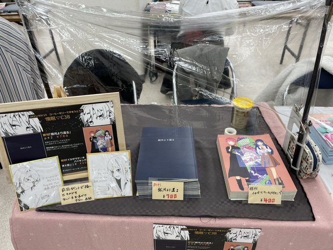 #設営完了 #手打ち7 設営完了しましたー!!!! 2冊しかないですがお待ちしてます! あと去年描いた色紙が出てきたので貰ってくれる方声掛けてください!!!👍✨