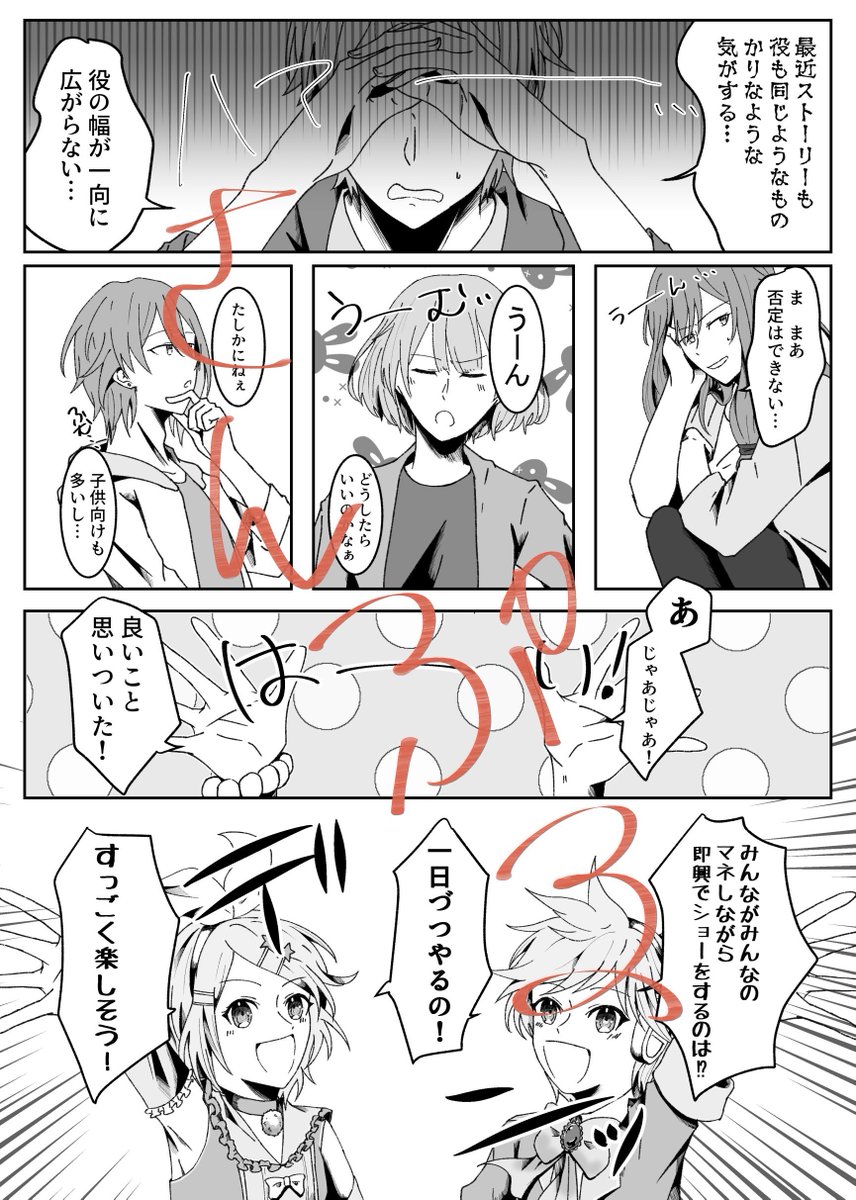 新刊サンプルです! 表紙まだですすみません頑張ります!!! 完全オリジナル派生私のための本です!!! 小話2本、四コマ4本入ってます!!