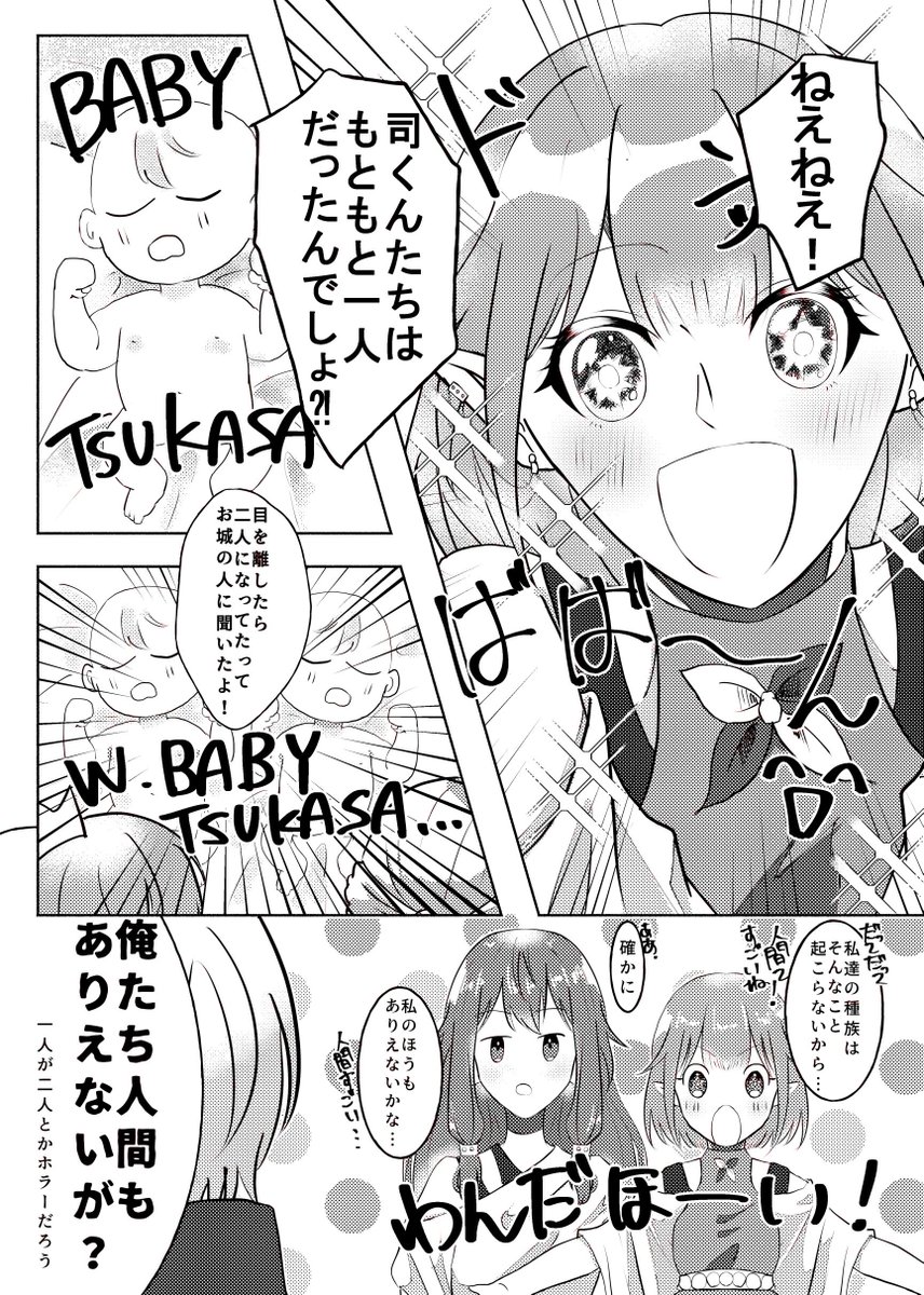 10 111 7/23 類司オンリー(巡るいつかのSTAGE!)で配布予定の新刊サンプルです!みんなが入れ替わって遊ぶダショ+ほんのりルツのハイスピードギャグです👍絵柄があれです草 東ヒ18aで既刊と一緒にダラダラしてます!!!相互のみ取置き受け付けてます!リプください!多分無くならないです!!! 22/07/06 02:16