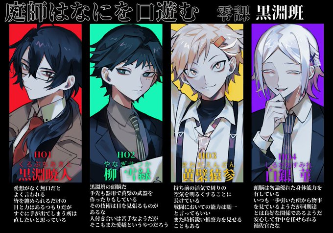 #庭師_自陣紹介 #庭師_黒淵班 最強自陣!紹介文は黒淵視点(HO1) 愛すべき息子達とパパを見てくれ