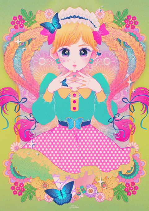 縦サムネ復活嬉しい〜💓 個展 #その彩りに恋をする のメインビジュアルの女の子①です♪ 可愛い子を描きたいなあと思い色んな試行錯誤を経て出来上がりました✨ #ピクルスアート展 #illustration #創作イラスト #レトロイラスト