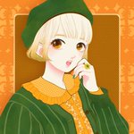 個展展示作品⑤ OYASAIGIRLS 「かぼちゃ」 #その彩りに恋をする #ピクルスアート展 個展の描き下ろしイラストです。 甘くて可愛い、子供も好き、ハロウィンなイメージだったので少し幼めに描きました。 ガーリースタイルで☺️ カーディガンや帽子は皮、ブラウスは中身を表現しています。
