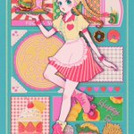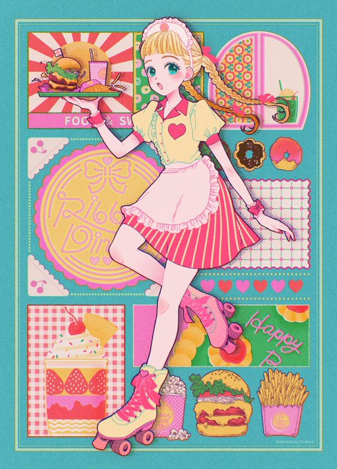 「お客様、少々お待ちくださーい!」 本日も満員御礼🍒 Ribbon🎀Dainerへようこそ〜✨ #絵描きさんと繋がりたい #イラスト好きさんと繋がりたい #Illustration #レトロイラスト