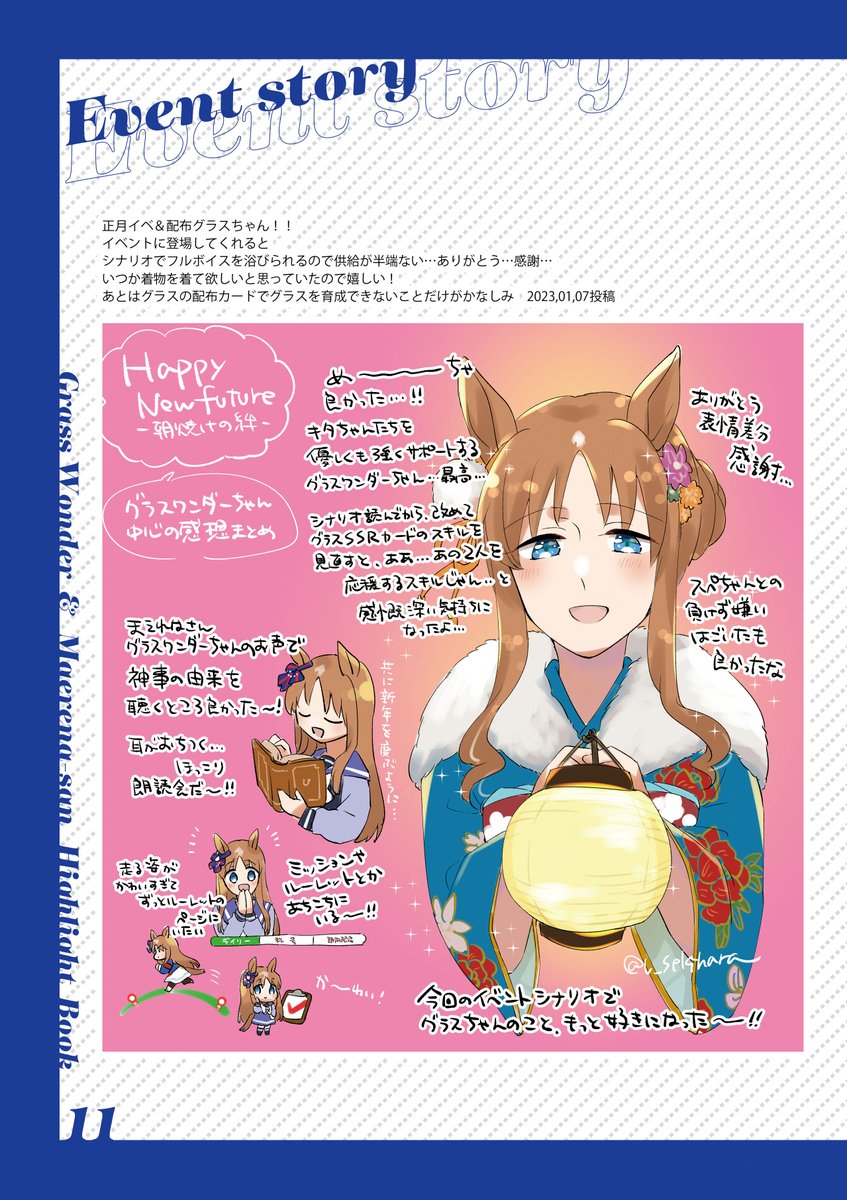 【C102新刊】グラスワンダーちゃんのハイライトイラスト本のサンプルです!Twitterに上げてたイラストを1冊にまとめました!ただいま予約受付中です~😊🐎💙 🍈メロンブックス🍈 melonbooks.co.jp/detail/detail.…