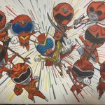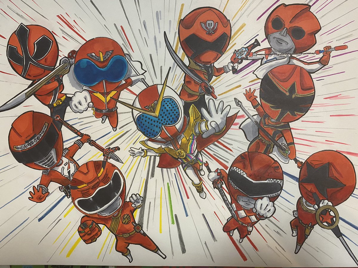 調整がめちゃくちゃ必要ですが、割と色塗りは完成しました!推しとかではなく、ゼンカイジャーに関係してる戦隊レッドとゼンカイザーを描きました。またちゃんと描けたらアップします。