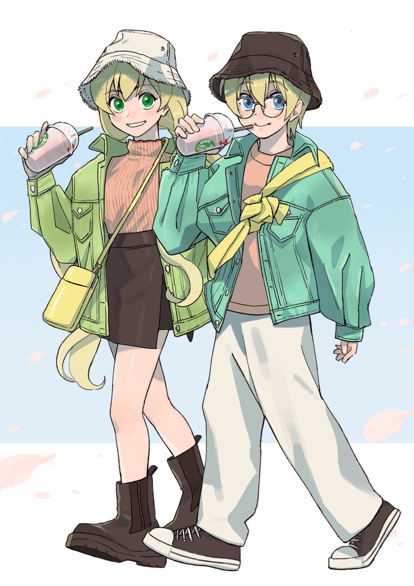 マシュマロでリクエスト頂いた春服のホワイトちゃんです!(ブラックくんも足しちゃった)