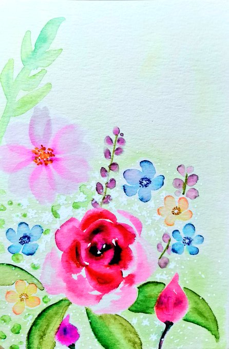 うん、とっても失敗してる気がするけど、とりあえず頑張ろう… この紙は水彩には向かない気がする… #水彩画 #水彩 #お絵描き好きさんと繋がりたい #お絵描き