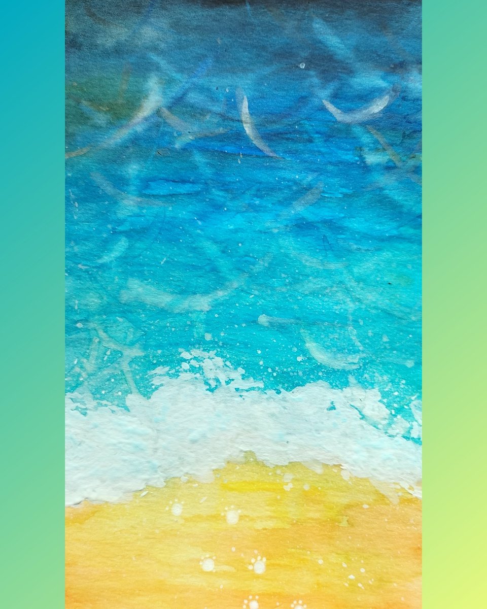 お絵描き練習中🖌 波打ち際を描いたつもりやけど、なんだかビール🍺に見えてきた… #お絵描き #水彩 #お絵描き練習中