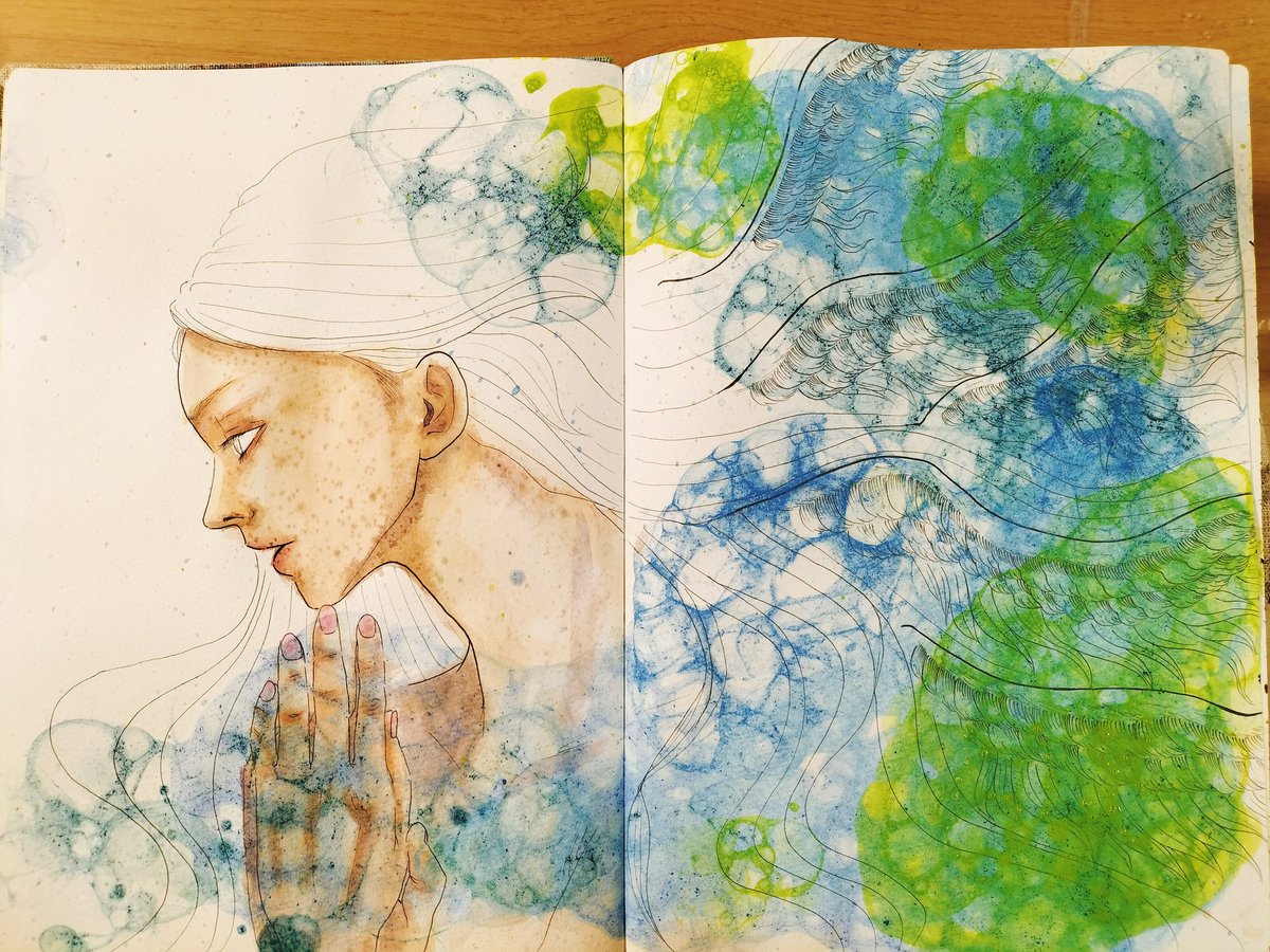 お絵描き🖌 「祈り」 とにかく紙が水彩に合ってなかった…けどしたい表現は出来たかな。 匂いは苦手だけどシャボン玉楽しい(•‿•)次はしぶきが飛ばないように工夫しよう(•‿•) #お絵描き #お絵描き練習中 #お絵描き好きさんと繋がりたい #水彩 #水彩イラスト